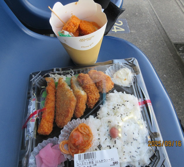 9/16ヤクルト戦。本日はちょっとした目論見があって、球場に行く前にスーパーによってお弁当を買っておいた。「とんかつ弁当」とラベルシールにはあるのにどうみても「ミックスフライ弁当」、袋で添付されている調味料はしょうゆとなかなかとぼけた弁当ではあるが、ま、そこはどうでもいいっす。