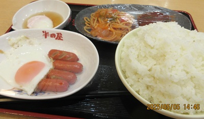 ご飯の量に対してハンバーグ、ソーセージ、目玉焼きとおかずの量も十分なので、これでご飯が余るということもなかろう。万一余ったら温泉卵をご飯にかけて流し込むプランBも。まあ、朝も軽めだったし余裕をもって完食。この時間にこれだけ食べたら、夜はせいぜいサンドイッチかおにぎり程度の軽めに
