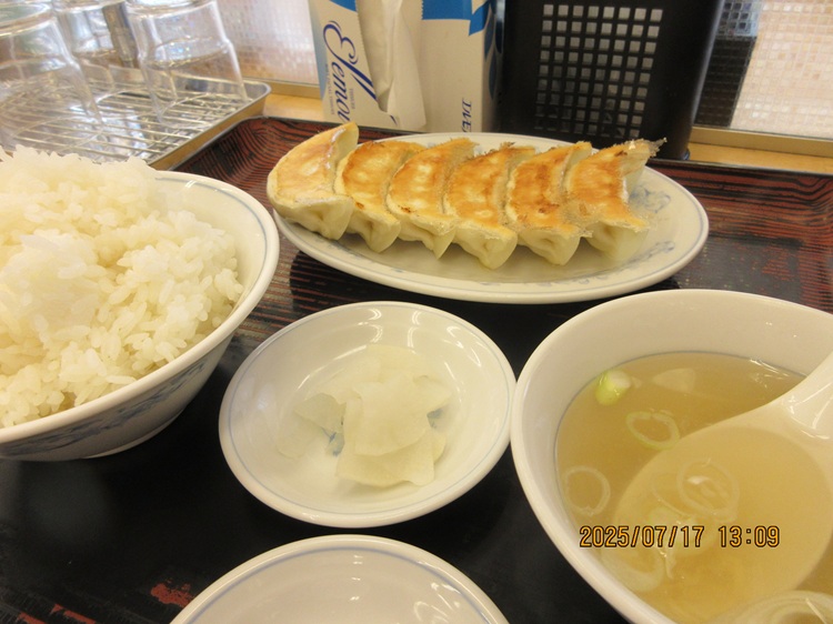 さっそく一つ味わうとパリパリによく焼けた餃子がうまい。いきなり一つ食べてしまったので、残り5つでどんぶり飯を食べきれるようにペースを算段。完食。ごちそうさまでした。