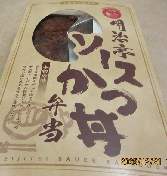 ここ長野はソースカツ。もっとも発祥は駒ヶ根・伊那の南信地区。この明治亭が長野駅に支店および弁当売店を出しているということで、長野市じたいがソースカツの勢力圏というわけでもない。