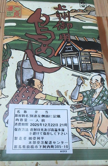 どっちがどっちというわけではないが、駅弁は冷めきってからでも勝負できるが、こちらはできれば温かみが残ってるうちに食べたい。まあうちに持ち帰ってレンジでチンしちゃえば条件一緒になりますが。あと意外と添えられた漬物がおいしく、取っておいて翌日白米でいただきました。