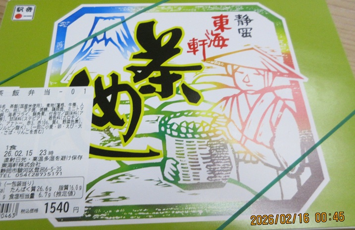 ホント若干、若干ですね豪華なのは。ごはんも若干風味がついてるかなって感じ。それにつけてもこの茶めし弁当が1,540円。昨日の幕の内が1,250円。いや、ボッてるとは思いませんよ。駅弁なりの品質管理、廃棄基準、材料調達などを考えるとこんなもんだと思います。