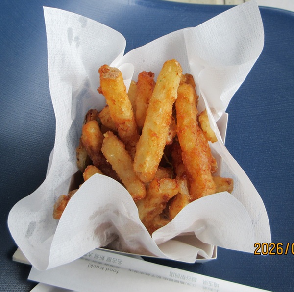 ざっくり切ったポテトを注文してから揚げるので、揚げたてホヤホヤが味わえる。いわゆるファストフードのポテトと違って粗目のごつごつしたポテトの食感。ハッシュドポテトっぽくもある。
