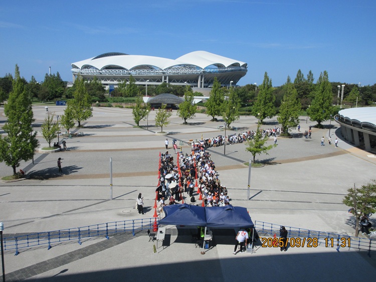 最終戦とあって出足も好調。左2レーンが一般入場。右1レーンが後援会先行。さてここからどれだけ一般の人が後援会になって、また後援会(レギュラー、プレミアム)もどれだけ金の力で先々行入場会員(ダイヤモンド、オレンジダイヤモンド)に移行するのか。本当はこの時期にもう「26後援会募集」みたいな感じでバーンと受付すれば、今の熱気のまま入会してもらえるんだろうなあ… 多分後援会の会員管理システムが25年分と26年分の区分が年越えないとできないんだろうな。