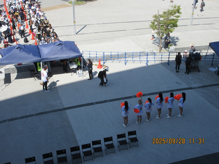 本日のお出迎えはギャオス内藤氏とチアリーダーズ。内藤氏は本当に今年はよくお目にかかった。あと特任コーチのベンちゃんも想定以上に来てくれて、指導しているところをよく見かけたものである。