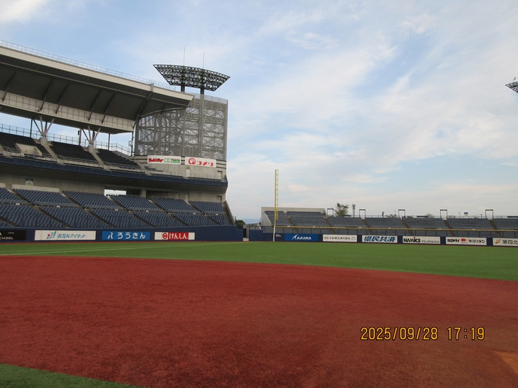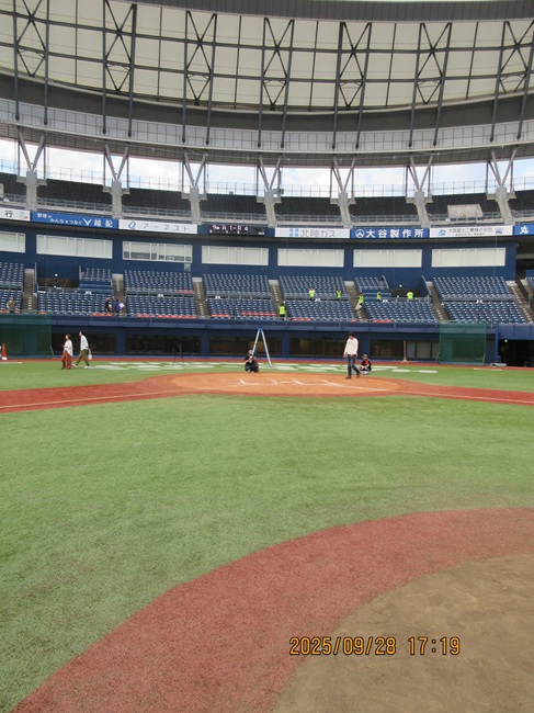 フィールドウォークは西武ファンならベルーナドーム試合時はかならず行われるので、さほど珍しい事でもないが、それでも別の球場のフィールドに立ってみると感動する。やっぱ野球場ってのは広いっすね。特に外野手。こんな広いところを3人で守るんだから大変だ。