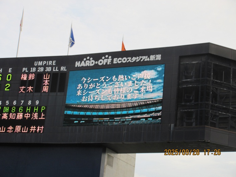 また来年も新潟で、そして首都圏の球場でお会いできたらと思います。