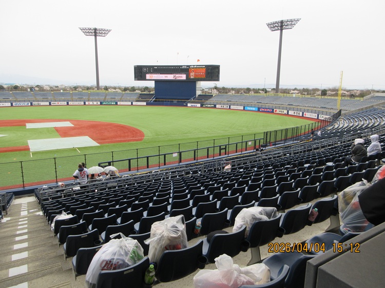 オイシ打線も二度の一死満塁を逃して何とも消化不良の試合になりましたが、今日はそんなことよりなによりも凍えたー。来場者は皆さんお疲れさまでした。帰ったらあったまって風邪ひかないようにしましょう。という試合でした。