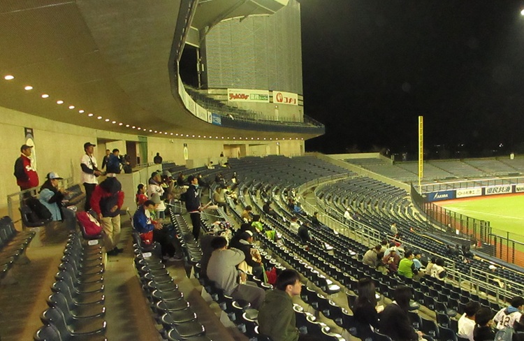 スタンドも寒いがオイシ打線も寒い。というか非効率な攻め。2回、3回、5回と併殺で二死無走者にしてからまた走者が出るものの無得点というパターンを繰り返す。(2回は併殺の間に1点取りましたが…) 結局1-5の敗戦で、横須賀からの流れを持ってくることはできず。