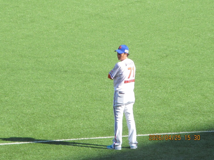 先頭高のバントは投手が動かずに処理できるほどの強い当たり。難なく三塁に送球アウト。サヨナラのチャンスがあっさりついえたオイシックスはそのまま無得点。10回打ち切りで2-2の引き分けと終った。