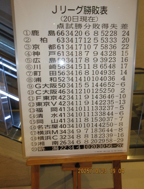 メディアシップ内に貼られるJリーグ順位表