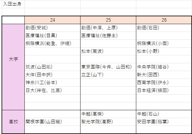 この入団ルートがこの先どうなるか。これもこの先オイシックスを見ていく重要なポイントかと思います。先日の総括会見で池田社長が言っていた「オイシックスのブランド化」とは、まさにこのルートの広がりかなあとワシは思います。今年は西南学院と日本経済大と九州まで在籍学校がひろがりちょびっと広がったのかなと…