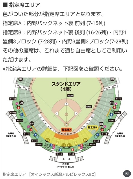 内野指定席導入のお知らせ | ニュース | オイシックス新潟アルビレックス・ベースボール・クラブ