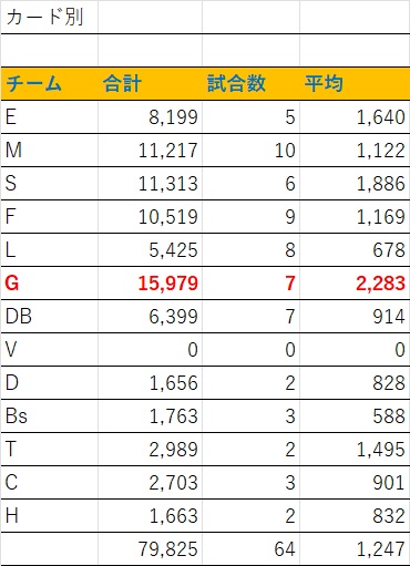 初年度はカード別平均一位ではあるけれど、そんなに巨人依存ではなかったんですね。