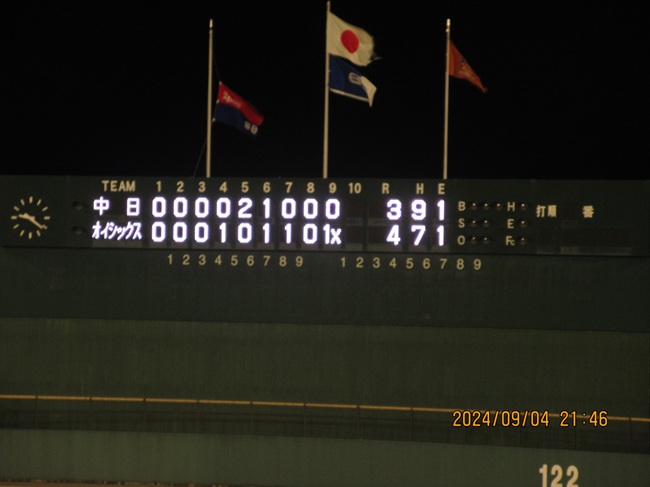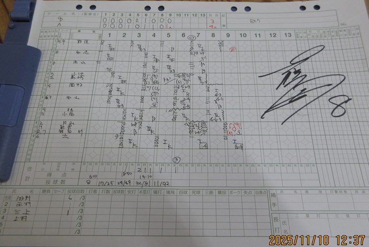 24/9/4中日戦とそのスコアシート(+サヨナラ打藤原選手のサイン)