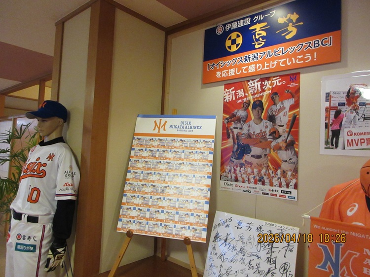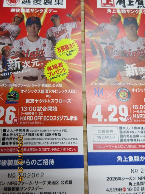 4/26が越後製菓、4/29が角上魚類、5/9がコメリと自社マッチデーに限らず、こうして他社スポンサーデーも招待券を取り次いで配っているみたいですね。さすが老舗スポンサーだけあってつながりも抜群です。