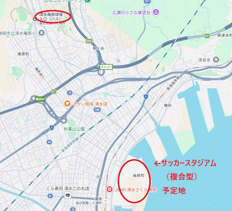まずエスパルス。現在はちゅーると負けず劣らず延々とバスに揺られて山上の日本平スタジアムに向かうが、このたび清水駅隣接の石油貯蔵タンク跡地にサッカー専用スタジアムを建てることが決定。