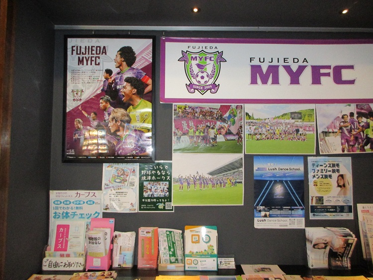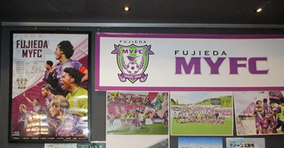 そして焼津の温泉で見つけた藤枝MYFCの展示。静岡県にはエスパルスとジュビロ、有名な2チームがあるのに加えて、静岡からわずか20キロにしてJ2のチームがあるのだ(人口10万ほどにしてJ2チームを持つ藤枝市についてはいずれ訪ねてみたい) さらにJFLに降格してしまったが、県東端の沼津にも「アスルクラロ沼津」が活動している。