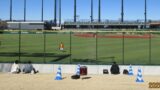 ところがが歩いて数分。住宅造成中の空き地に「シャトルバス乗り場」の看板があるじゃないですか。前回ジャイアンツタウンを訪ねたときは球場敷地内までバスが乗り入れてましたが、乗降場所が変わった? しかも待ち列は短く、次の便で十分乗り切れる長さ。これはこだわって歩くよりもバスの方が楽、あっという間に方針変更。