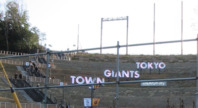 おり切ると「TOKYO GIANTS TOWN」のオブジェが。ここから「京王よみうりランド駅」まではものの4~5分。300階段を登るなんてもってのほかですが、おっさんにとっては降りるのも一苦労です。完全に膝が笑ってしまい。宿まで階段の上がり降り大変でした。
