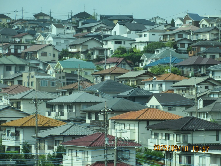 進行右手を見ると、はっと息を詰める風景が。家が建ち並んで山上まで続いている。東京の人口膨張というのはここまで宅地化が進んだ結果なのだ。いや技術的には山を削ればいくらでも平地は作れるが、これは普段から上り下りで苦労するだろうなあ… と非常に平坦な越後平野ならびに武蔵野台地で生まれ育った人間としては思う。