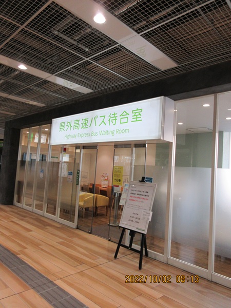 万代シテイ内の高速バス専用待合室。新潟駅から乗ると待合室もなく、ただの路上で待つことになるからできる限りこちらから乗りたい。