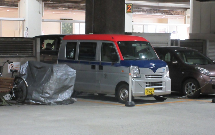 ターミナル内に停まってるバスと同塗色の社用車。スポーツ公園でも(主にサッカー)臨時観客輸送で列整理の社員さんを送り届けにたまーに見る。