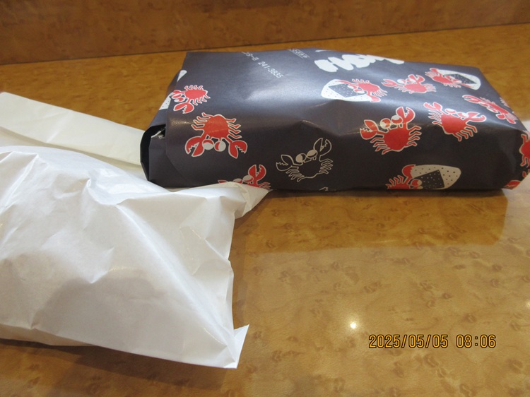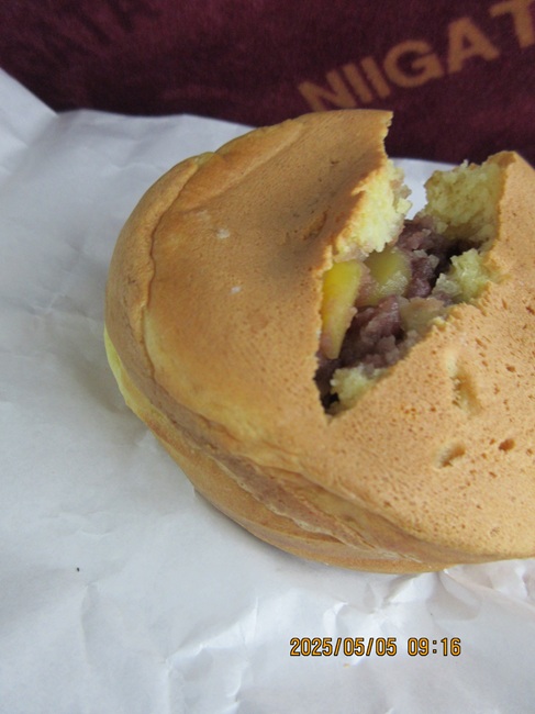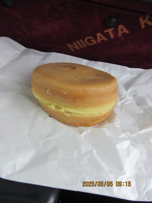 朝食は高速バスなのでいつもの寿屋のおにぎりと、今日はおにぎりを一個減らして代わりに同店のもう一つの目玉である大判焼きを一個。