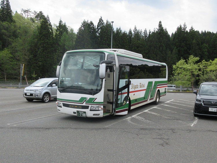 西会津SA(といっても売店一つすらない)で休憩。高速バス(特に黎明期)が大いに人気を得た理由として「地方から東京に来た人がさてそれじゃあ帰ろうとしたときに、なじみの塗装をした地元のバスが待ってて、乗ればもう安心して帰路につける」というのがあったそうだが、果たして真偽はいかに。
