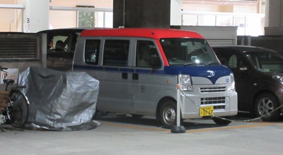 ターミナル内に停まってるバスと同塗色の社用車。スポーツ公園でも(主にサッカー)臨時観客輸送で列整理の社員さんを送り届けにたまーに見る。