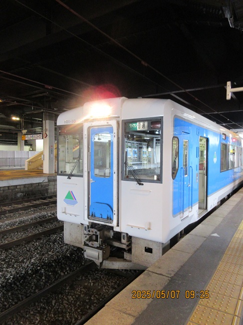 本日はまず山形から北西に伸びる左沢(あてらざわ)線に乗車。二両編成のディーゼルカー。
