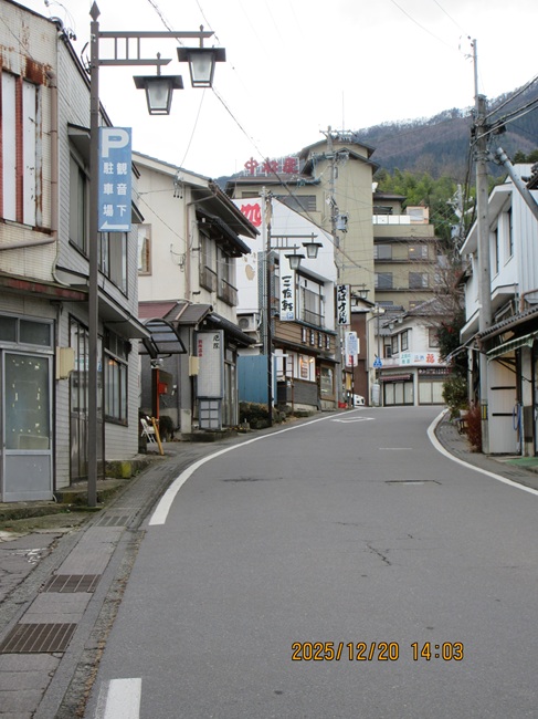 温泉街、および見どころは駅からさらに坂を上っていく。さすがにこれ以上の勾配は電車では厳しかろう。