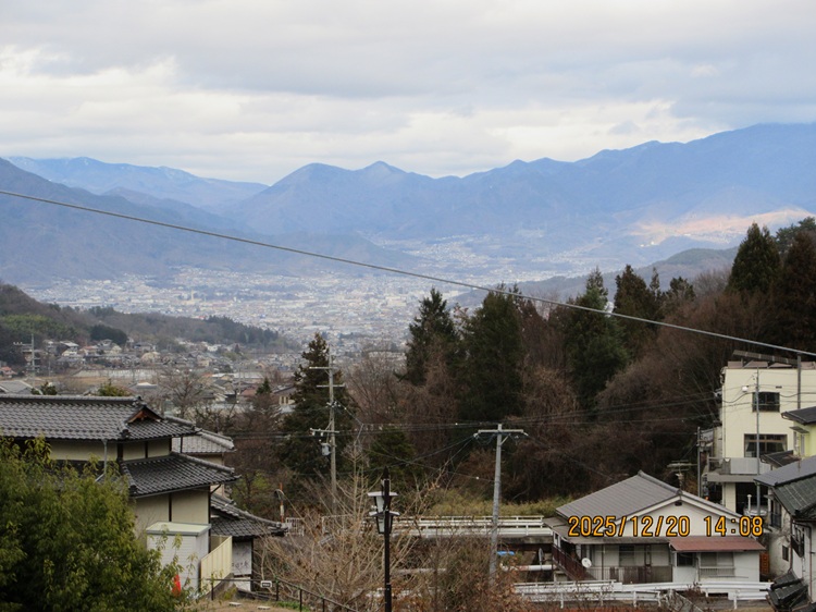 境内から見た上田市街(塩田平・上田平とも) こうしてみるとかなり高くまで登って来たなと実感します。