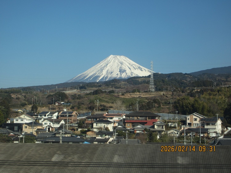 新横浜を出てしばらくすると見えてくる日本最高峰。ワシはもうこの辺から興奮しだしたのですが、これはもう東海道新幹線初心者。