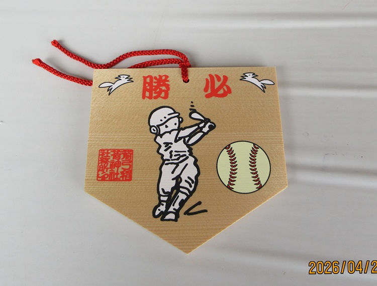 球児が描かれている絵馬に今年も書いていきます。