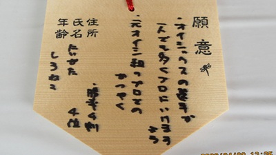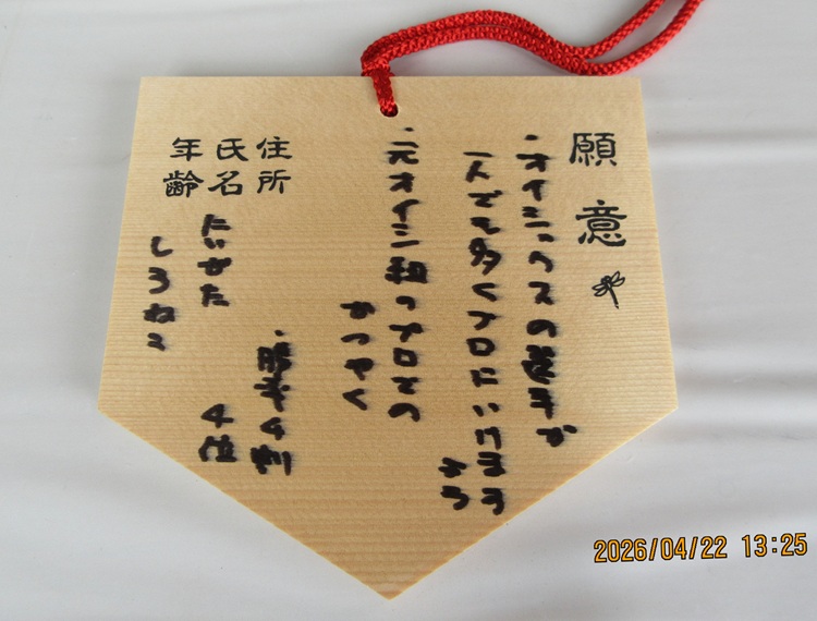 昨年も報告した通り主にはプレイヤーとしての祈願が多数なんですが、たまにファンとしての祈願もちらほら。隣がタイガースの連覇を祈願する絵馬でした。これは負けてらんねー。
