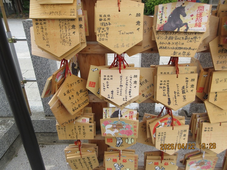 最後にしっかりと絵馬を掛けます。まあ溜まったら祈祷してお炊き上げなんでしょうけど、それはしゃあないっすね。